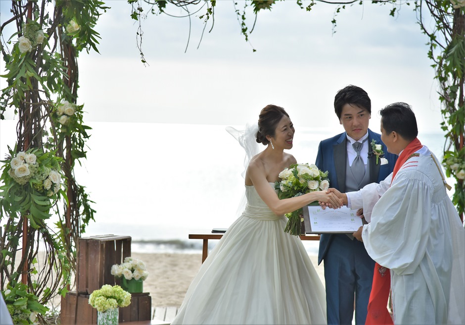 会場選びから始まり、理想の風景を求め、沢山の提案をいただきました。ホテルの雰囲気や対応など細かく伝えて下さり、とても思案しやすかったです。私たちのふわふわした要望に全部応えていただいて感謝の気持ちでいっぱいです。パーティーのデコレーション、サンセット後バルブライトのムード、机上のデコレーション、全てが思い通りで感動しました。あの時は素敵すぎ?本当に夢の中にいるようでした。様々な期限にもビデオ、DVD、音楽も含め、柔軟に対応していただき助かりました。こちらを選んで本当に良かったです。家族もよろこぶ最高の式になりました。ありがとうございました。