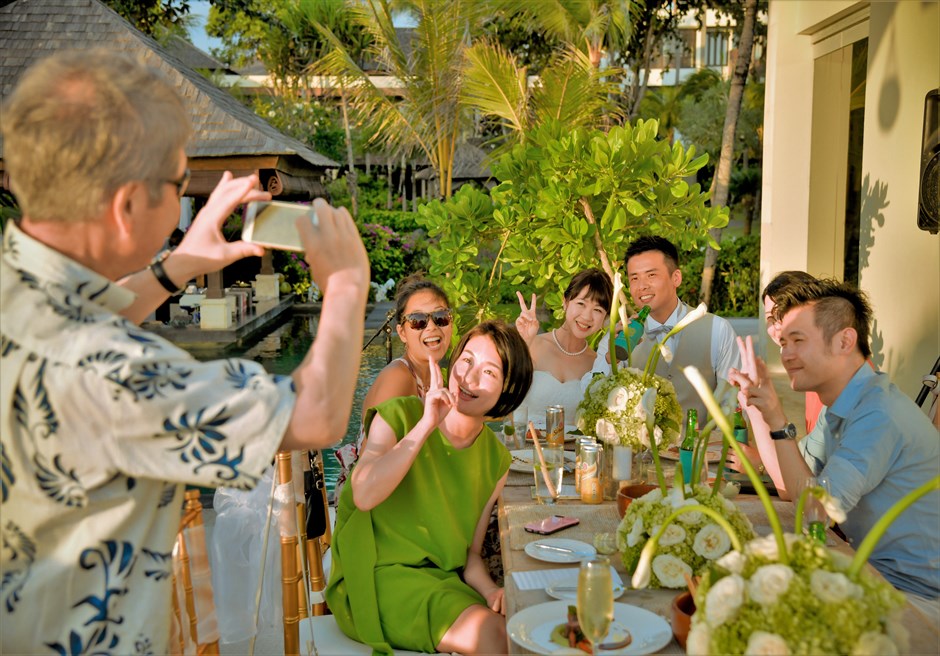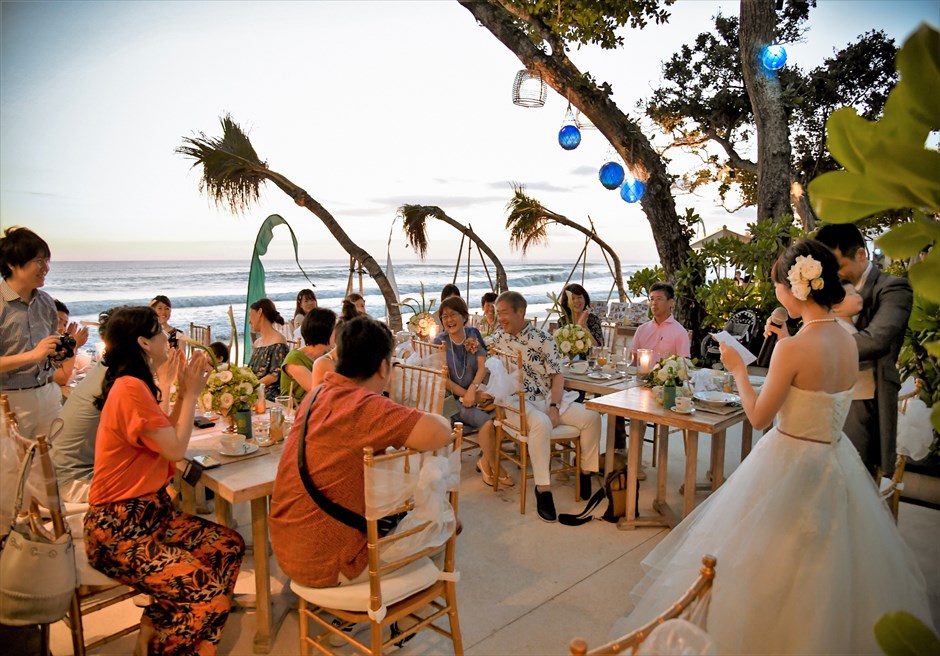 現地を知らないまま準備していたので不安がありましたが、会場が写真以上に素敵で、段取りもとても良く、海もサンセットも堪能できて、素晴らしかったです。また、友達ともわいわいできて、家族ともたくさん観光もでき、最後は3人でのんびり過ごせて、理想を超える、本当に最高の結婚式&旅行になりました。初海外になった息子も、向こうの気候が良かったのもあり、いつもよりよく食べて、よく寝て、飛行機含め、何のトラブルなくすごせました。Bless Baliさんいお任せして、心から良かったと思っております。感謝してもしきれません、本当にありがとうございました。おかげさまで、一家はすっかりバリ島ファンとなりました。また近々、絶対訪れようと思います。