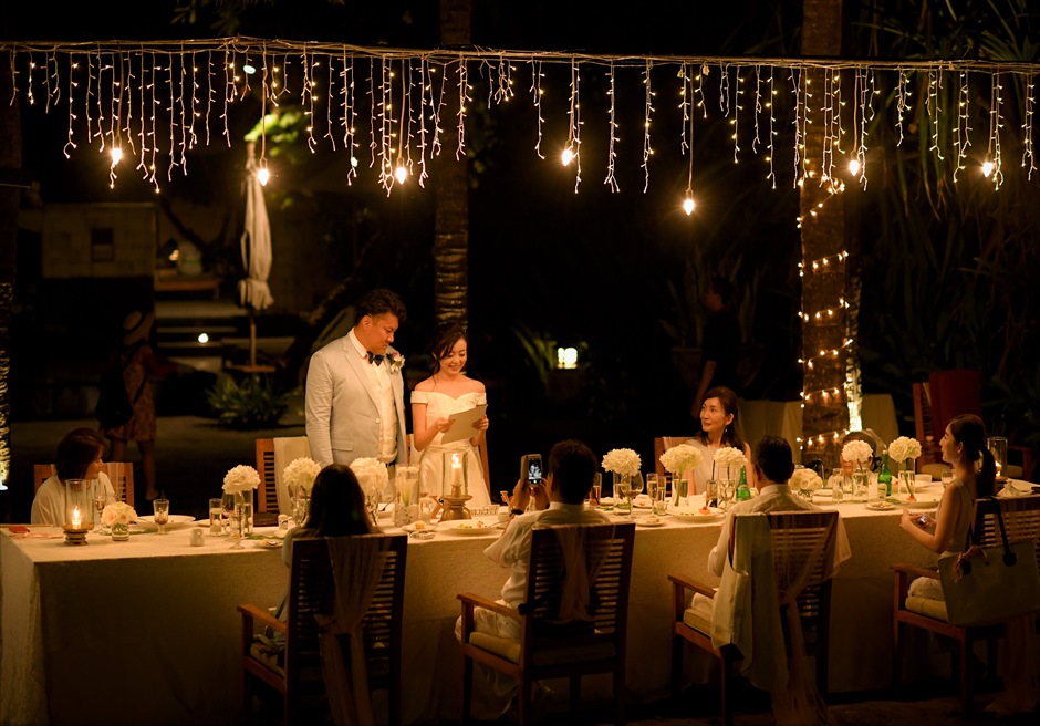 今回のバリ旅行、挙式はとても忘れられない最高のものになりました。家族も本当にいい式だったと大変喜んでおります。準備期間が大変タイトな中で色々と我儘も聞いて頂き、祖母の事やサプライズ動画も親身になって相談にのって頂き、本当に助かりました。皆様バリでの生活経験もあありなので皆様からの助言は大変参考になりましたし、大手では実現できない様々なアレンジを低コストで実現頂けた事、細やかであたたかいお気遣いを頂けた事、貴社にお願いしてよかったと思うポイントは沢山ありました!日本で対応下さった皆様、バリでお世話下さった皆様、本当にありがとうございました。