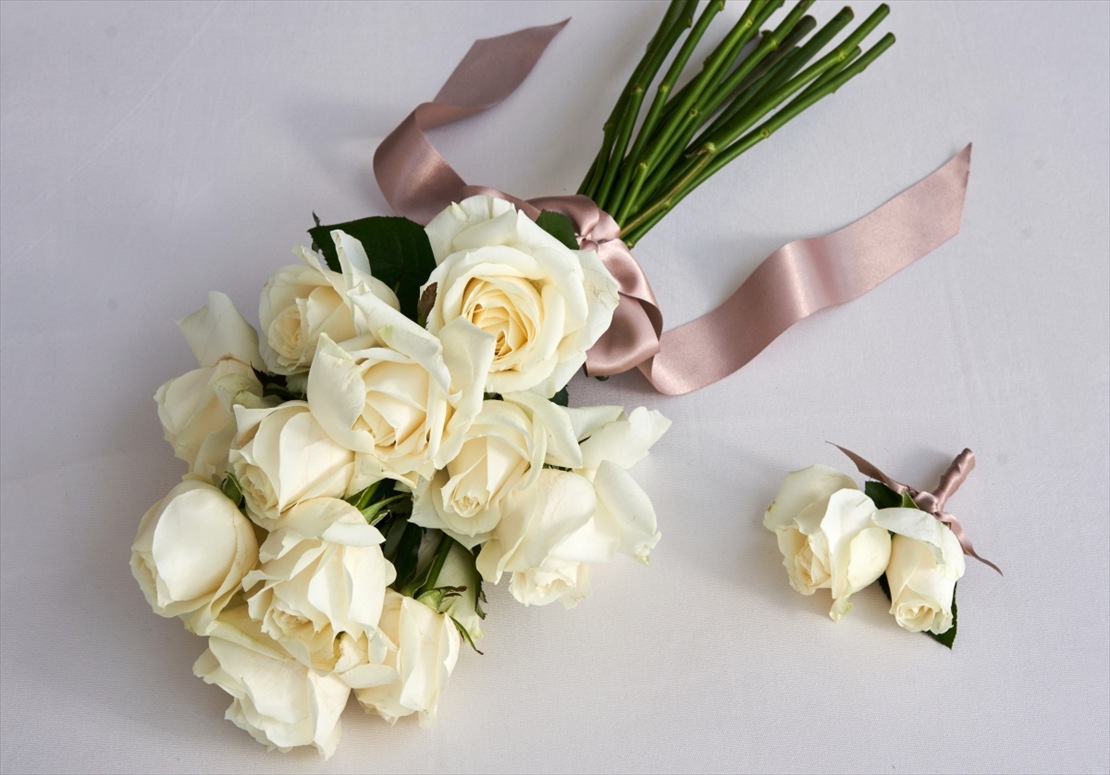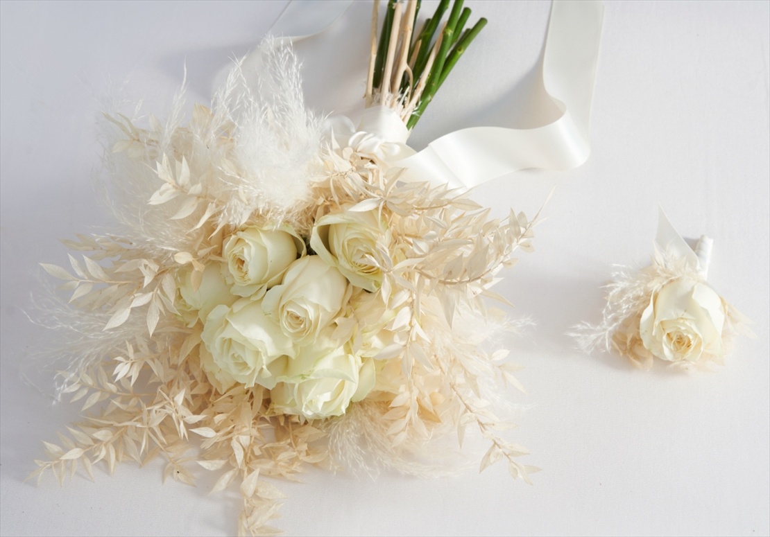 • ◇生花のブーケ&ブートニア(白ローズ)